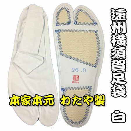 横須賀足袋の最大の特徴は、通常の布足袋に比べ約2倍程度の厚さの底当てが付いている点です。そのまま屋外を歩くことも可能な作りをしているので、耐久性は抜群です。雪駄と合わせてのご使用をお勧めしています!