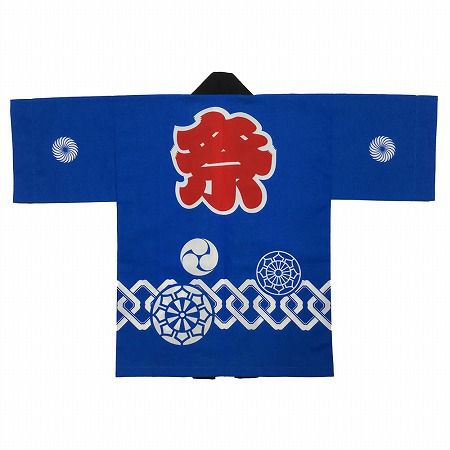 はっぴ 睦 少し長め 大人用半天●反応奈染半天●文字入り総柄●