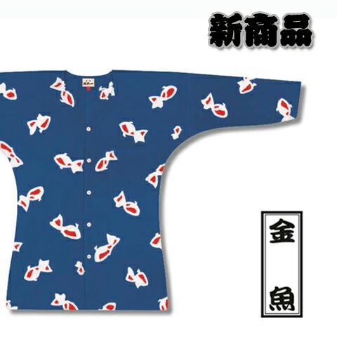 5. 【ネコポス便又は宅急便対応】 江戸一 鯉口シャツ 【特撰手拭】 金魚 女性用