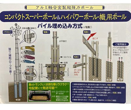 風の強い地域等では別途添え杭や補助ロープの追加をご用意いただく場合もございます。