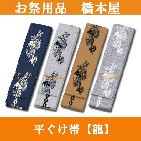 品質〇 長すぎない ひらぐけ帯 紬織 【龍】 藍・ネズ/紺・カラシ・ネズ/白