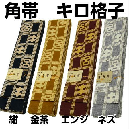 高品質‼ 長~く使える 染角帯 【キロ格子】 幅8cm 長さ400cm