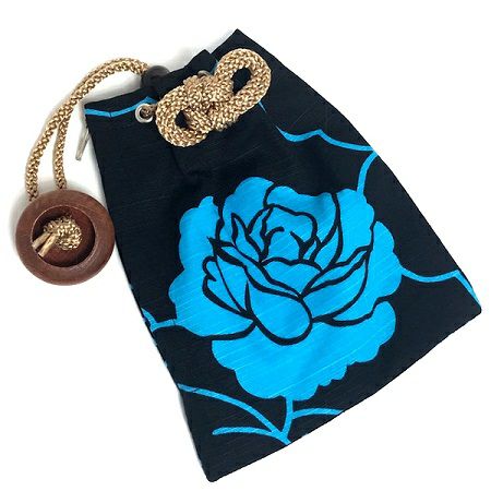 鯉口シャツ【大バラブルー】やポシェット【大バラブルー】と同じ生地を使用した巾着です。